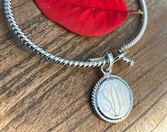 Sterling Silver Monogram Charm Bangle Bracelet: Personalized Initial Jewelry