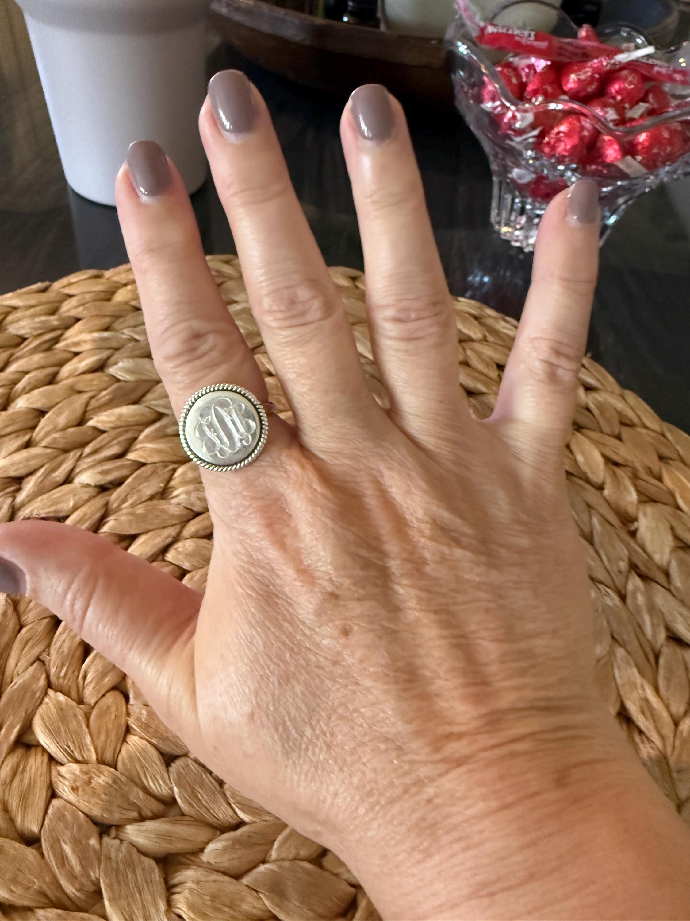 Beautiful Pure Sterling Silver 925 (not plated) Monogrammed ring.