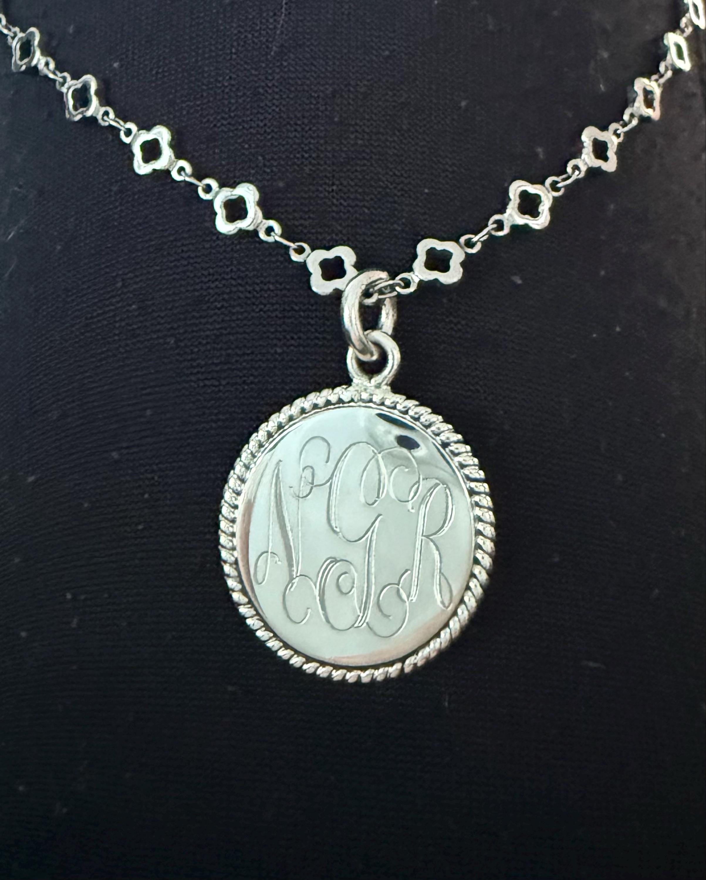 Beautiful Monogrammed Pure Sterling Silver 925 (not plated) Pendant with rope edge. Available in various sizes.