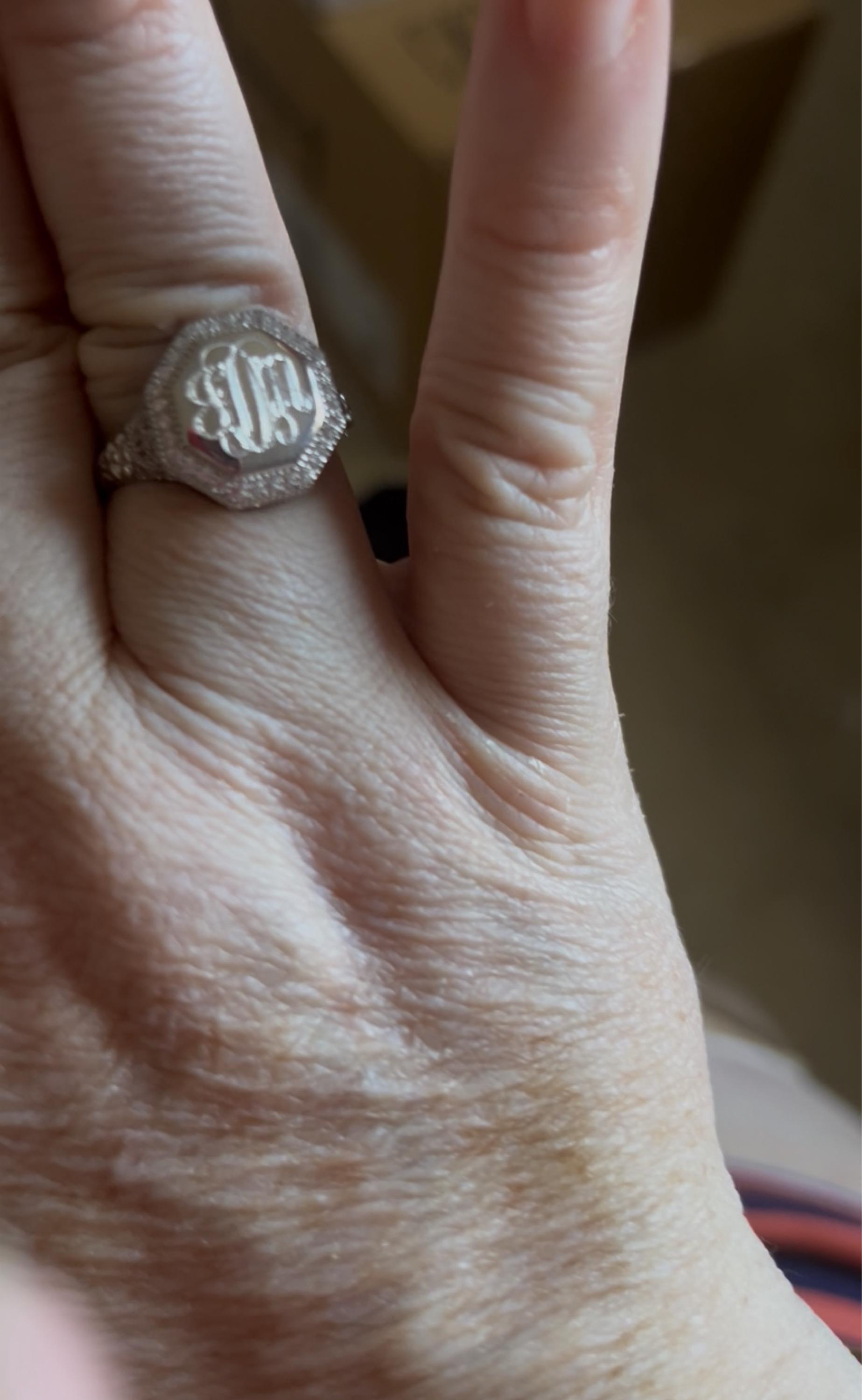 Beautiful Pure 925 Sterling Silver (not plated) monogrammed ring. Cubic Zirconia tiny accents.