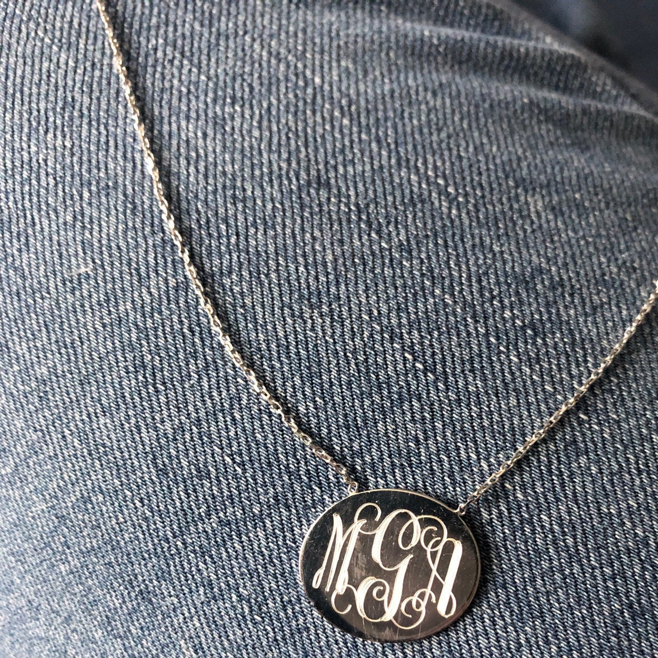 Beautiful Monogrammed Pure Sterling Silver (not plated) . Adjustable Chain is attached.